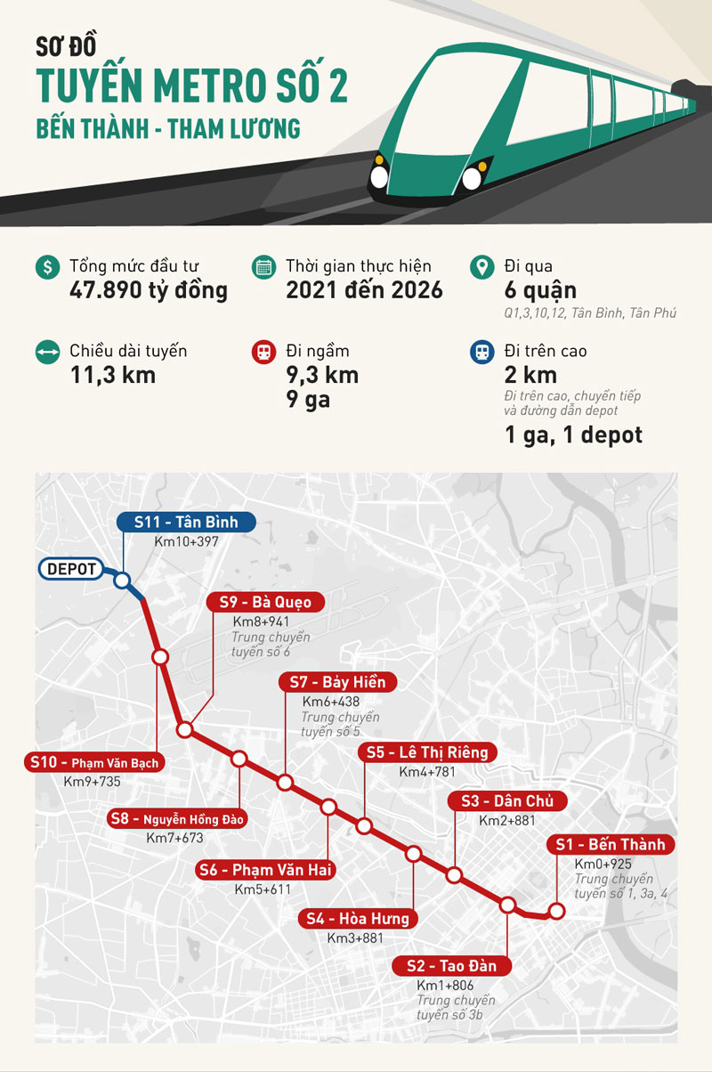 Thông tin sơ lược tuyến Metro số 2 Bến Thành – Tham Lương